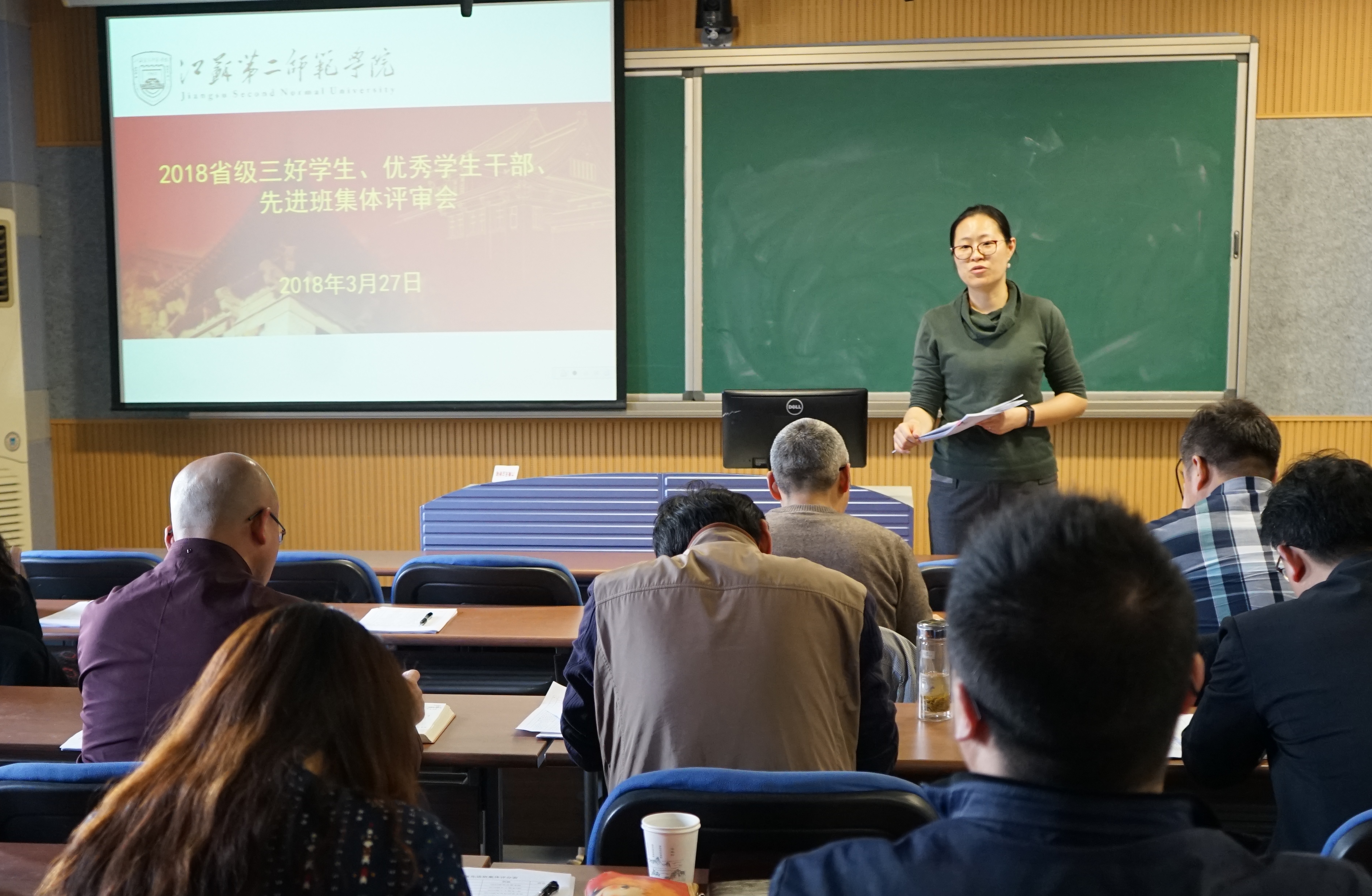 3月28日下午,我校在草场门校区召开2018年度省级三好学生、优秀学生干部、先进班集体校内评审会。校学生工作指导委员会委员担任评审会评委。会议由学工处处长刘莹主持。