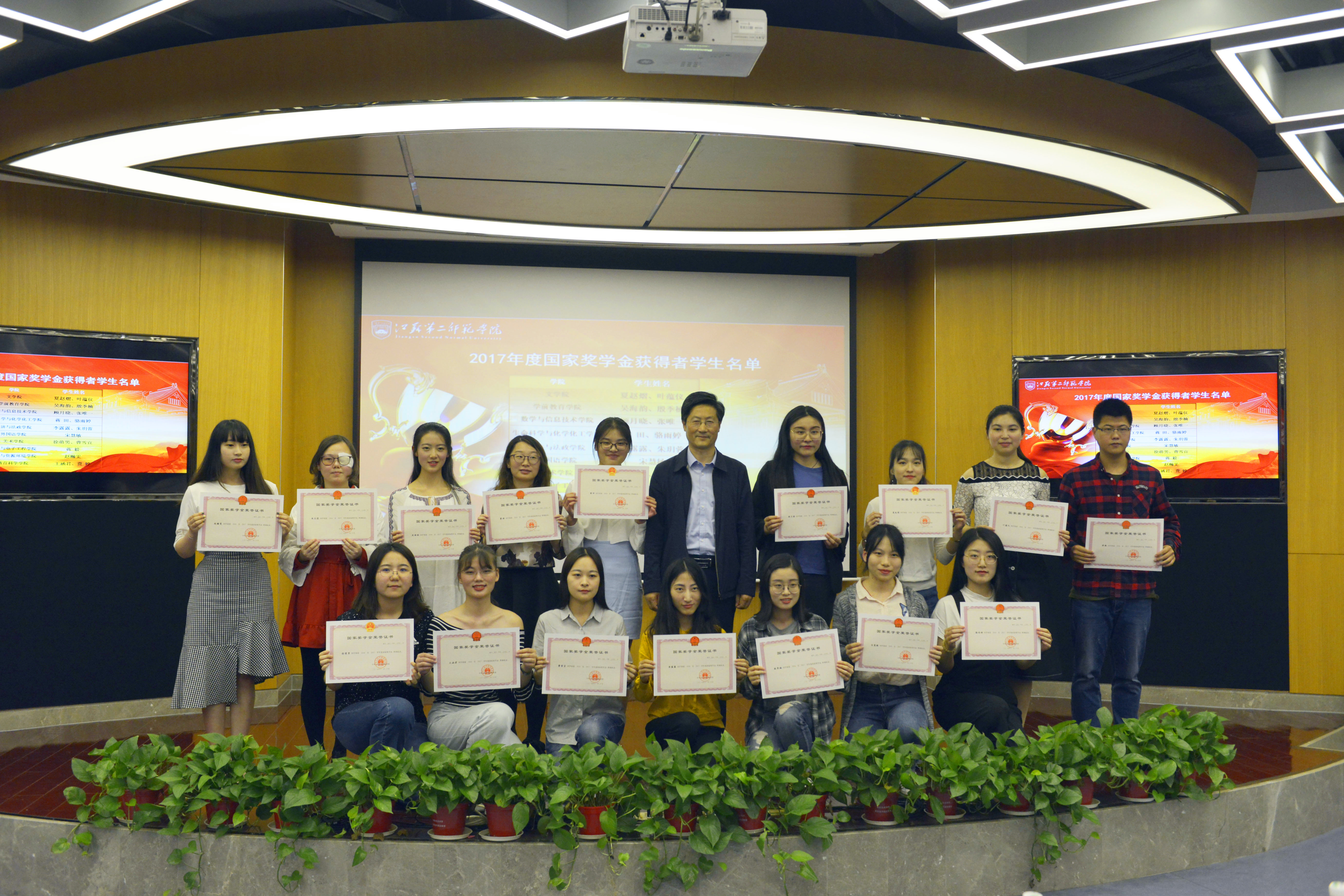 5月23日下午,我校在草场门校区隆重举行2017年度国家奖学金颁奖典礼暨优秀事迹分享会。校长王建、副校长刘继红,宣传部、教务处、团委等部门负责人出席会议并颁奖。各学院学生工作负责人、全体辅导员及部分学生代表参加会议。会议由学工处处长刘莹主持。