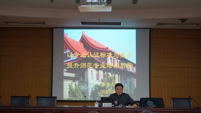 李洪天教授围绕师范专业,介绍了专业认证的基本概念、认证办法的三个特点,从三个方面对认证标准进行了解读,并结合多年师范院校工作经历和经验,就师范类院校学工队伍如何为学生成长成才、为学校应对专业认证有所作为提出了意见和建议。