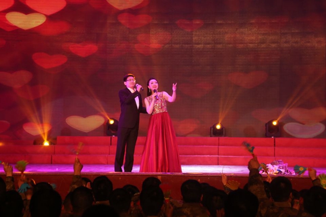 在该文艺晚会上,韦利军、张想、陈暇思师生共同表演了意大利民歌《缆车》,肖园园演唱了歌曲《越来越好》,优美的歌声赢得现场阵阵欢呼,一曲唱罢,在官兵们热情的要求下又返场与韦利军老师合作奉献了一首军旅爱情歌曲《亲爱的人》,给为支持国防军事事业而默默付出的军嫂们送去了慰问,也为热烈的气氛增添了一份温馨和感动。
