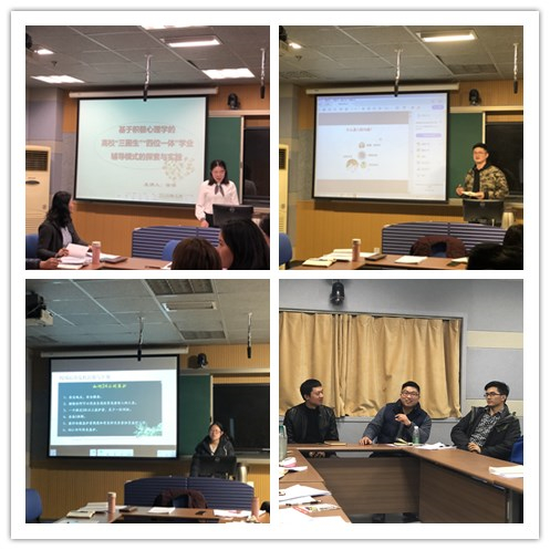 交流会中,心理中心路淑楠老师首先对2018级新生心理普测报告进行说明,对我校18级新生心理普测测试结果、访谈结果进行详细解读。接着,心理中心周韵老师介绍了我校今年心理健康工作的总体安排,特别强调了心理健康四级网络构建、学期初摸底排查、心理月报、心理健康主题活动开展、辅导员专业培训等重点工作的注意事项。最后,徐田、查圣祥、潘倩、金永生四位老师分享了各自参加的专业培训收获,杨亦青、何丽娜等老师就近期工作中遇到的心理异常学生个案和在场的各位老师展开交流。