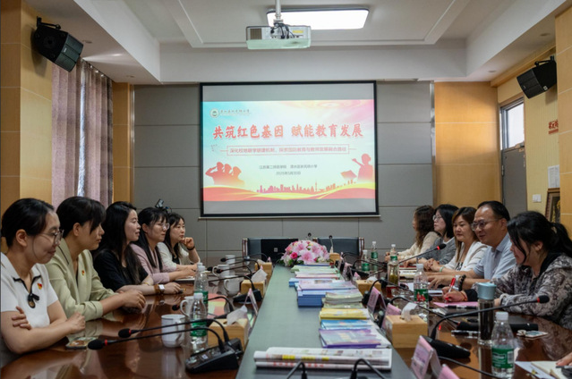 在联学实践后,两校就课程与教师发展协同创新进行联建座谈。溧水状元坊小学党总支书记、校长章勇致欢迎词,并介绍了学校历史以及学校以剪纸、古诗词教育、轮滑、啦啦操等艺体教育为品牌的办学特色;状元坊小学副校长吕燕进行了“乡土+德育”主题的汇报讲座,展示了状元坊小学创新德育的实践成果。体育学院党总支副书记倪嘉丹与人文学部学生党支部书记王倩共同强调,我校体育学院在排舞等体育项目上拥有传统优势,而人文学部则在传承非遗文化与传统文化方面独具特色,拥有专业团队与项目。未来,双方有望利用大中小学生之间“朋辈效应”的独特优势,共建课程体系,进一步深化交流合作。求真书院党总支副书记葛静介绍了江苏第二师范学院教师职前职后一体化培养的基本情况,并汇报了国防STEM课程的研发进度。状元坊小学党总支副书记邱淑芳对“基础教育课程建设需求与联建建议”展开汇报。